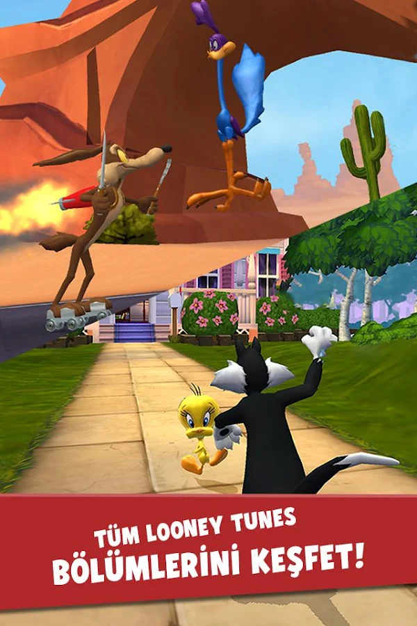 Bugs Bunny, Road Runner, Tweety ve diğer favori Looney Tunes karakteriyle yeni seviyelere koşun, zıplayın, ezin ve kayın! Yeni Looney Tunes karakterleri ve ikonik Looney Tunes manzaralarının yer aldığı bölgelerin kilidini açmak için seviye hedeflerini tamamlayın. Her bir karakterin özel yeteneğini ve Koleksiyoncu Kartını keşfederken sayısız vahşi, çılgın ve Looney yolun keyfini çıkarın. Koşma zamanı canım!