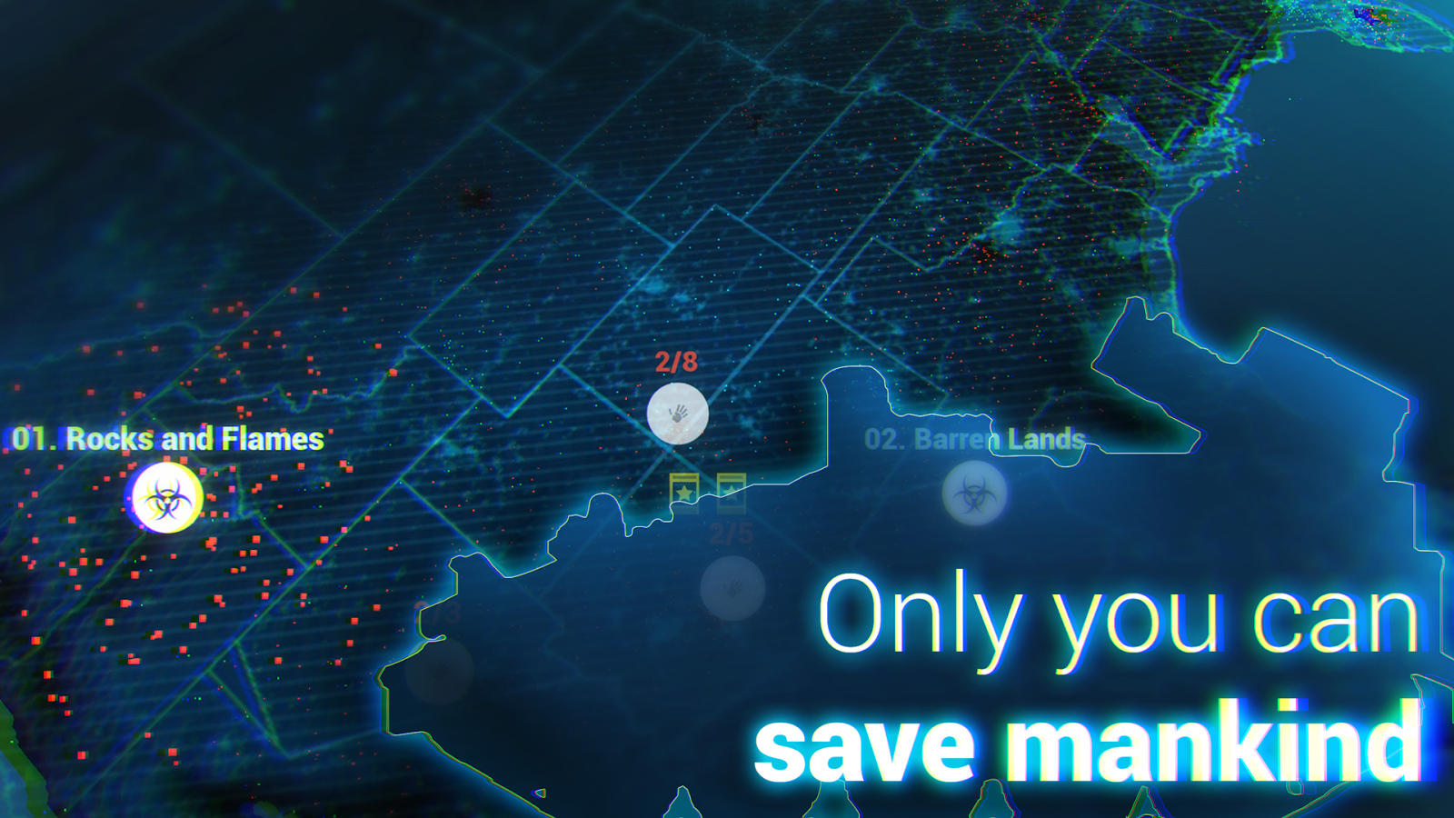 Deploy your units on the field, improve your base, invest abandoned building and fortify them to place your snipers, harvest old hospitals or call a bombing raid to destroy a bridge or even the whole block!